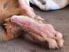 Heureusement ce n'est pas le cas de Ella : ses humains l'amènent tôt. Le traitement est mis en place : soins locaux avec des shampoings, des bains de siège, des antibiotiques pour lutter contre l'infection, des anti douleurs... Mais malgré tout le dévouement et l'implication de ses humains les choses tournent mal : Ella se laisse aller, elle mange moins, et reste prostrée dans ses urines. Cela aggrave la pododermatite qui gagne l'arrière de ses fesses : elle est complètement nue de tout l'arrière train, la peau est abîmée. L'évolution est inquiétante, au point que le sujet de l'euthanasie soit abordé : un compagnon qui reste dans ses urines ou ses excréments peut être un signe d'une souffrance et d'une qualité de vie dégradée.