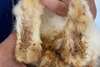 Mais comme Ella a bien lu tous les livres vétérinaires qui abordent les lagomorphes, elle a décidé de varier les plaisirs fin 2024, avec une belle pododermatite. Qu'est-ce que c'est que ça la pododermatite ?! Eh bien une inflammation des coussinets plantaires. Mais les lapins étant toujours pleins d'imagination pour compliquer les choses, chez eux une simple irritation des coussinets se transforme facilement en infection profonde, voire parfois en septicémie si non traitée à temps !